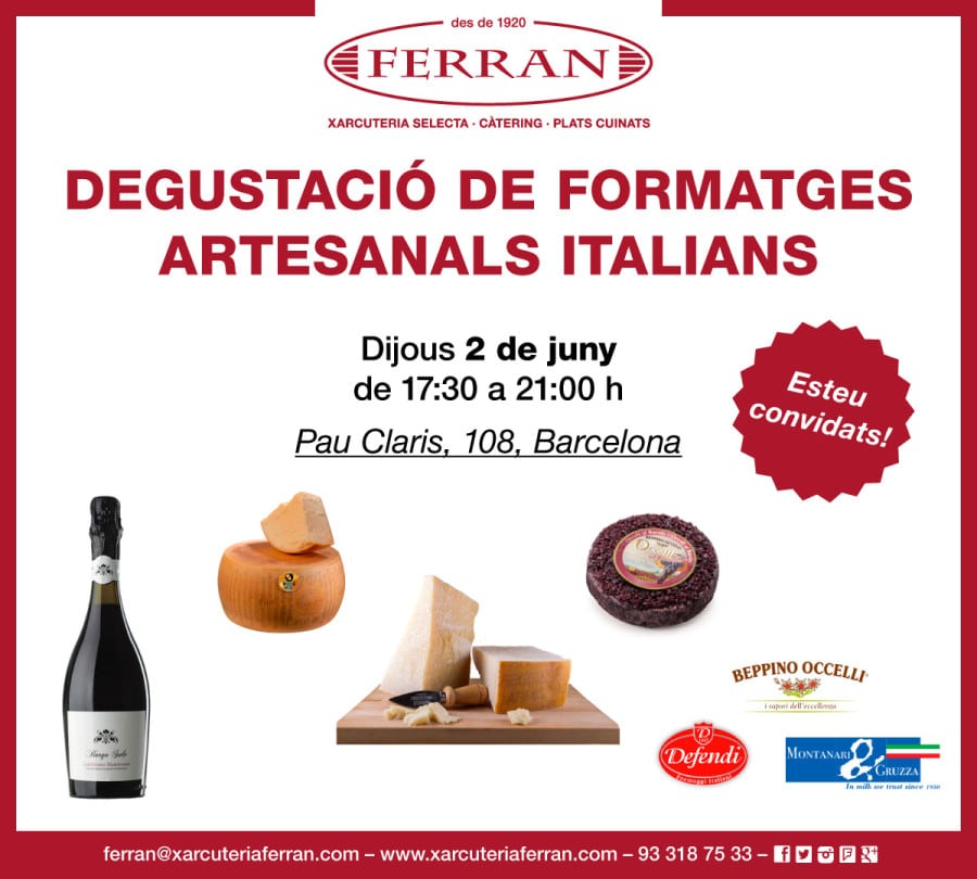El proper dijous 2 de juny podreu descobrir l’autèntic sabor dels formatges elaborats artesanalment a Itàlia. Diferents varietats provinents de la millor llet de cabra, vaca, ovella o de búfala, elaborats sempre amb la millor matèria primera. I és clar, com no podíem donar a provar els formatges “a seques”, tindrem per acompanyar-los un boníssim Lambrusco que no us deixarà indiferents.